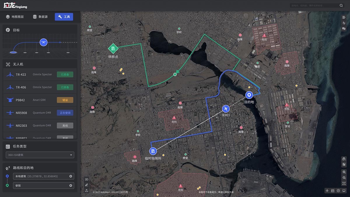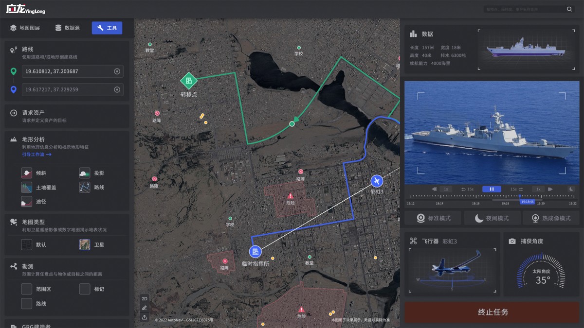 對(duì)地理空間上分散的人物、裝備、環(huán)境、事件等實(shí)時(shí)關(guān)聯(lián)和融合分析,形成戰(zhàn)場(chǎng)態(tài)勢(shì)圖譜。根據(jù)任務(wù)需要和態(tài)勢(shì)環(huán)境,形成任務(wù)資源有序調(diào)度路線,智能模擬推演對(duì)抗形式,實(shí)現(xiàn)有效路徑篩選、兵力編組和任務(wù)配置等層面的作戰(zhàn)指揮決策,指導(dǎo)復(fù)雜戰(zhàn)場(chǎng)環(huán)境下的軍事行動(dòng)。
