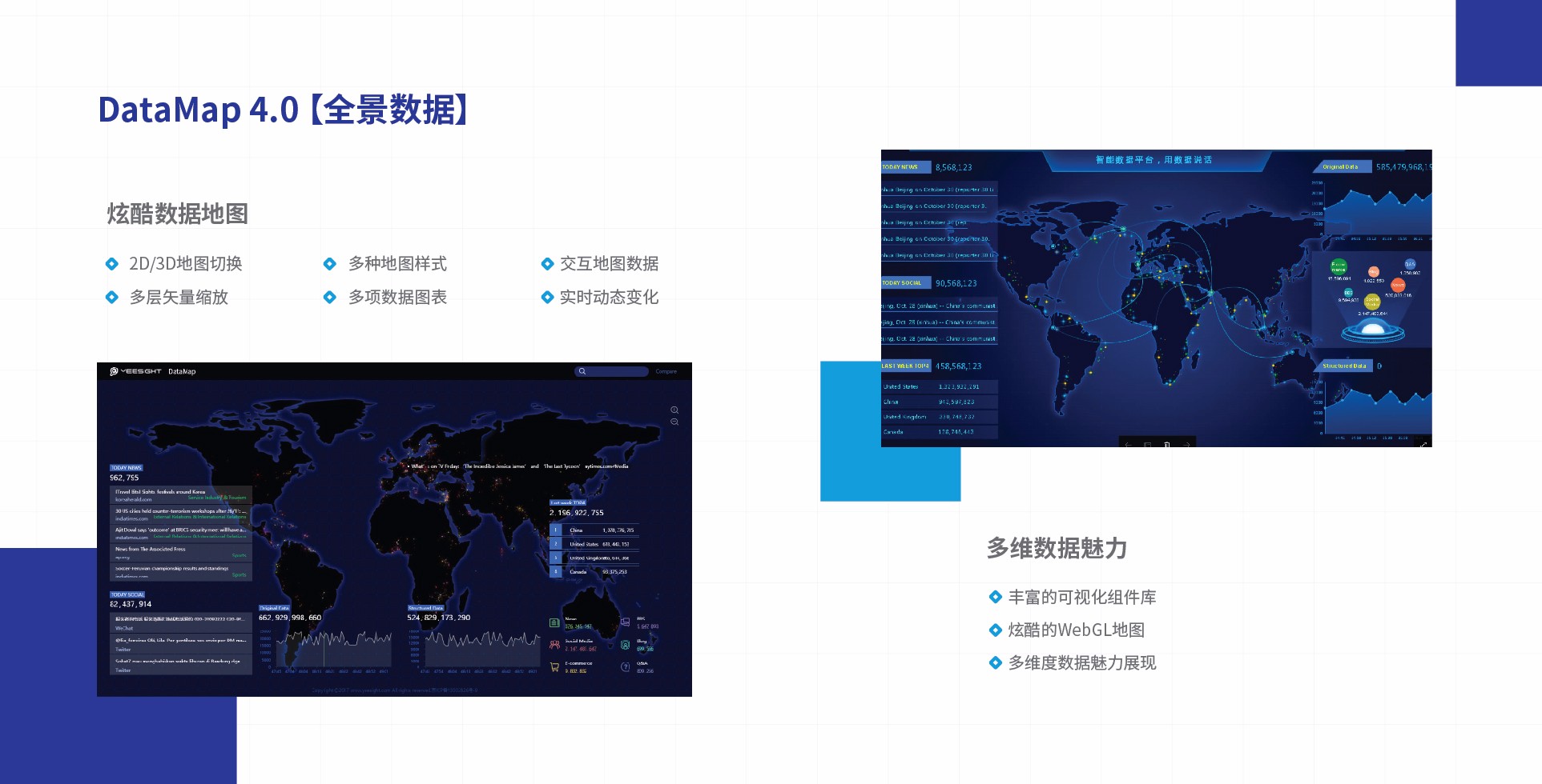 DataMap4.0是中譯語(yǔ)通(GTCOM)自主研發(fā)的一款強(qiáng)大的數(shù)據(jù)可視化開(kāi)發(fā)工具。它不僅可以定制化分析客戶(hù)自有數(shù)據(jù),更可依托中譯語(yǔ)通自有的知識(shí)圖譜、自然語(yǔ)言算法、恐慌預(yù)測(cè)分析等智能算法,實(shí)現(xiàn)對(duì)各種數(shù)據(jù)的深度可視化挖掘分析;還能夠提供便捷、所見(jiàn)即所得的數(shù)據(jù)可視化配置工具,滿(mǎn)足不同行業(yè)客戶(hù)在事件監(jiān)測(cè)、業(yè)務(wù)管控、風(fēng)險(xiǎn)預(yù)警、地理信息分析等多領(lǐng)域業(yè)務(wù)的可視化需求。